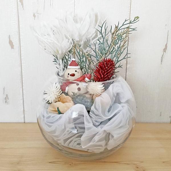 クリスマス 雪だるま ガラス クリスマスアレンジ ガラス ギフト クリスマス 飾り ガラスボウル プレゼント ハンドメイド 送料無料