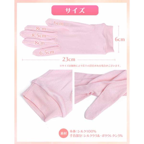 素材構成: シルク100%(手首部分はシルク95%・ポリウレタン5%)サイズ 親指 6.5cm 人差し指 8cm 中指 8.5cm 薬指 8cm 小指 6cm ※商品により多少の誤差がありますが、ご容赦ください。