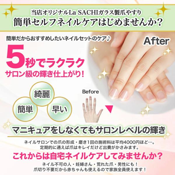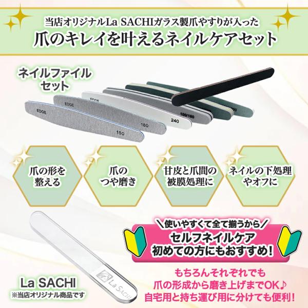 当店オリジナルブランド La SACHI ガラス製つめやすりとネイルファイルセットをおまとめしてお得なネイルケアキットに!