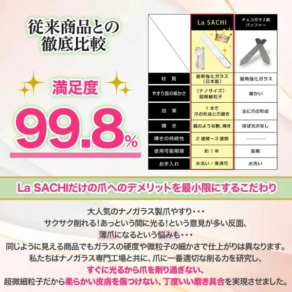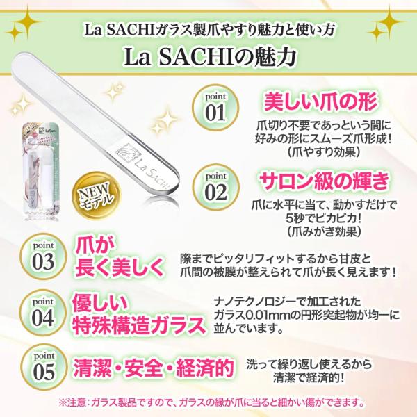 爪やすり 爪磨き ツヤ出し ネイルファイル LaSachi ラサチ ガラス ガラスヤスリ 2本 セット つめやすり ネイルケア 爪みがき 艶出し