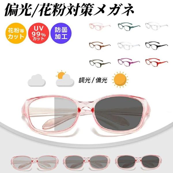 花粉 メガネ 偏光レンズ 調光 花粉防止メガネ曇り止め ゴーグル 大人用 花粉対策メガネ スクエアタイプ 眼鏡 めがね 飛沫 防塵 軽い 軽量 ブルーライトカット