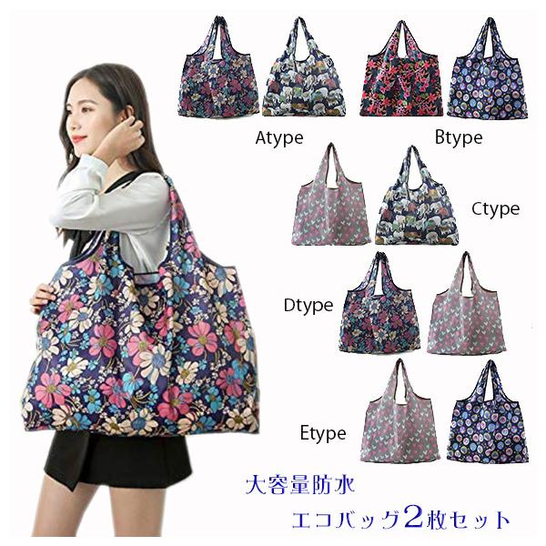 エコバッグ2枚セット 折りたたみ 買い物袋 大容量 防水 おしゃれ トートバッグ 軽量でポータブル 人気 bb2848