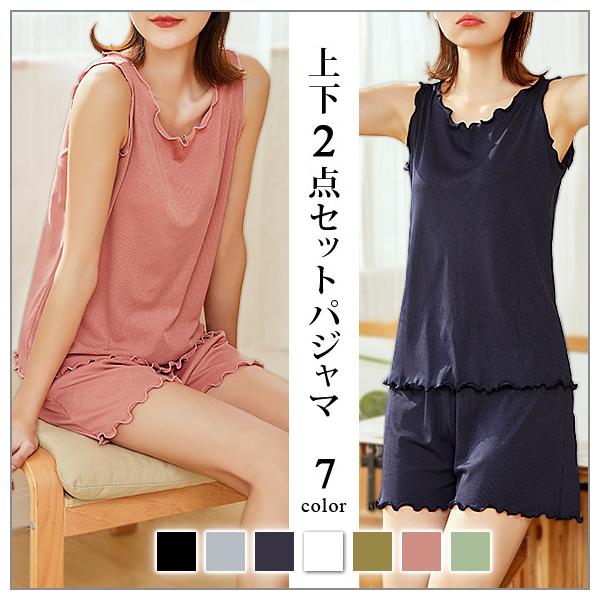 パジャマ レディース 上下セット ノースリーブ ナイトウェア ルームウェア 部屋着 無地 ショート丈 半ズボン ひんやり 涼しい ゆったり 春夏 ch1986