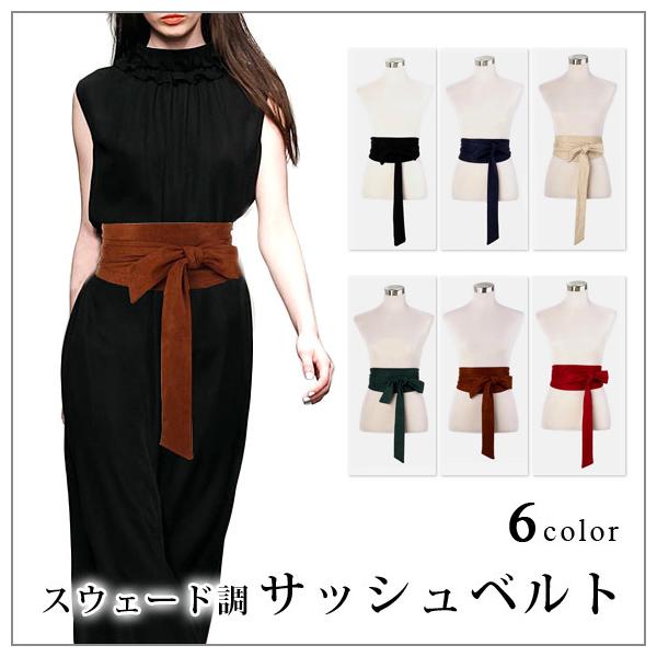 サッシュベルト リボン スウェード調 ハイウェスト 太ベルト 太め 細見え ウェストマーク おしゃれ 大人 pd2078