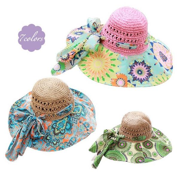 華やかな柄大きめのつばでしっかりUVカット&オシャレ〜