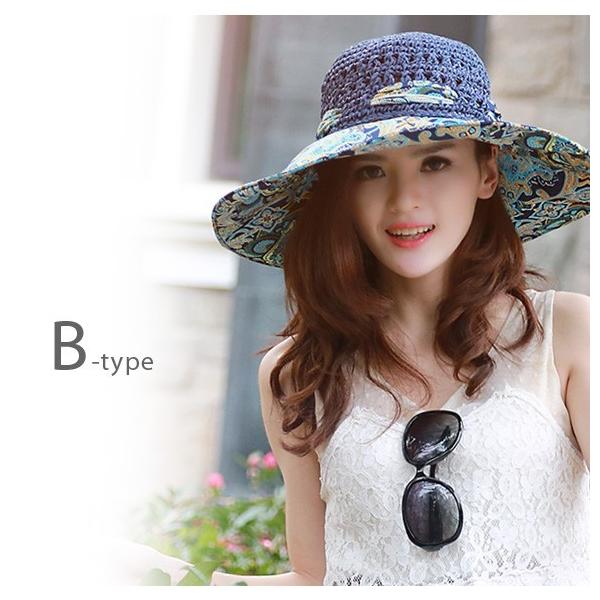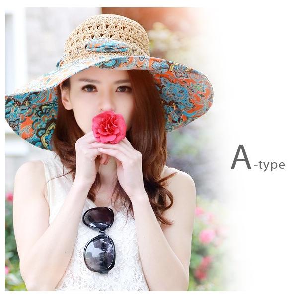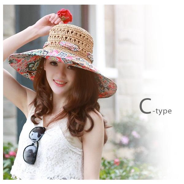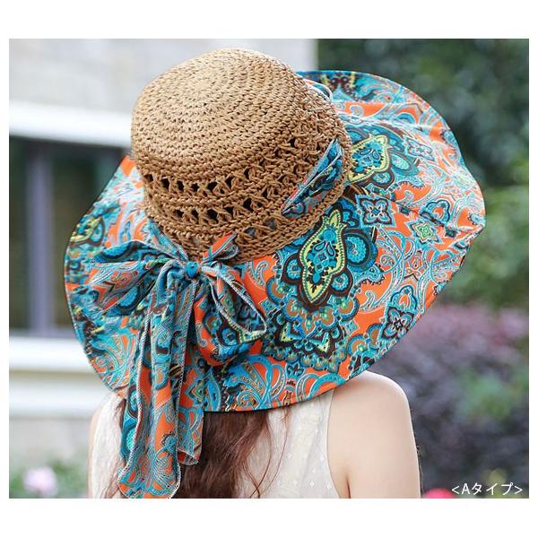 レディース 帽子 麦わら 携帯 収納 折りたたみ UVカット 紫外線対策 日よけ帽子 女優帽 夏 海 リゾート 広い つば リボン mz2626