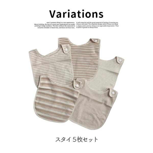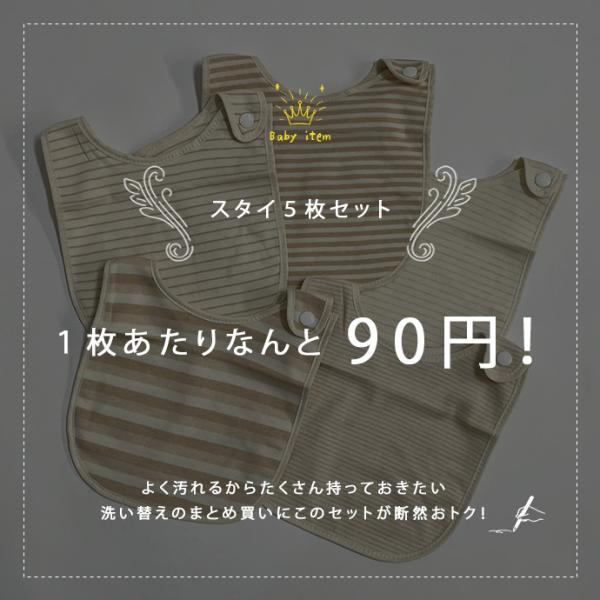 ベビー用品 スタイ 赤ちゃん オーガニックコットン 綿 5枚セット ボーダー まとめ買い 幼児 送料無料