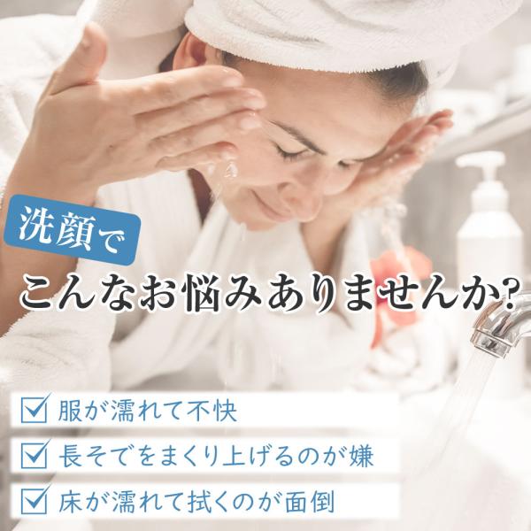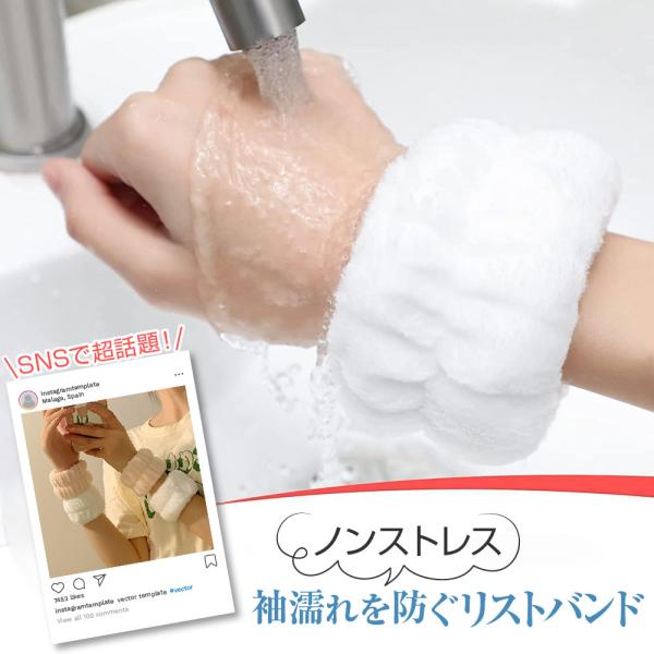 ・手首にリストバンドをはめるだけで、洗顔時に手首に流れ落ちる水を吸収してくれるので、服のそでが濡れる不快感を防ぎノンストレスで洗顔ができます。