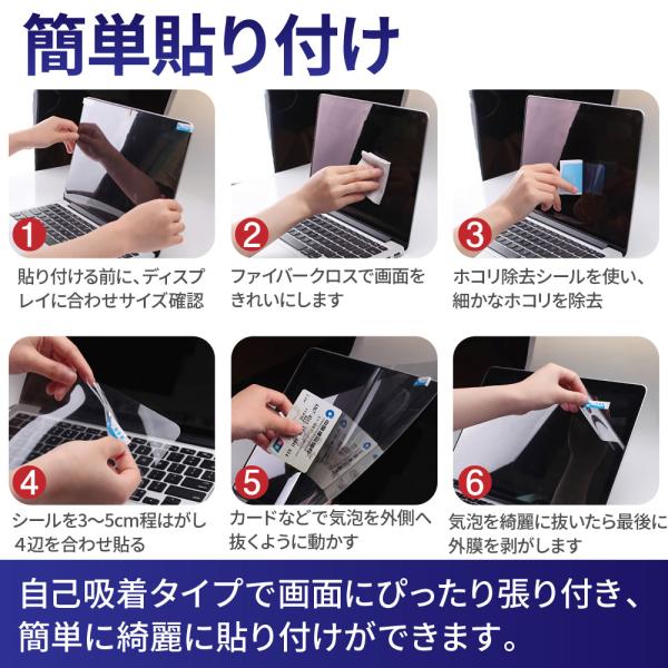 【簡単貼り付け】何度でも剥がせる、自己吸着タイプで画面にぴったり張り付き、簡単に綺麗に貼り付けができます。