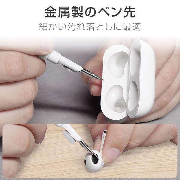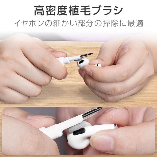 【多機能】マイクロファイバーブラシでイヤホンの小さな部分や穴の深くの頑固な汚れを掃除、高密度クリーニングブラシでイヤホンのサウンホールの汚れを落とします。金属のペン先では細かい隙間の汚れを掃除できます。<br><br>