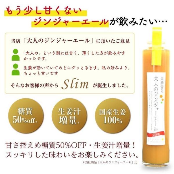 ヘルシーな辛口ジンジャーエールにありがとうをのせて!糖質50%OFF、生姜汁増量の辛口大人のジンジャーエールslimの丸瓶タイプ