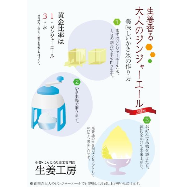 本品はぴりりとした辛味が特徴。まさに生姜の蜜のよう。ジンジャーエール用濃縮タイプ。国産生姜の絞り汁を使い、生姜独自の風味と辛みをそのままに、ジンジャーエールの素にしました。