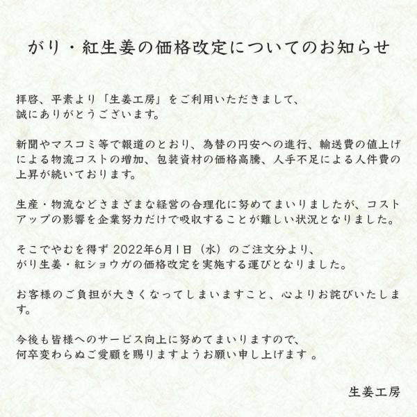 生姜専門店渾身の逸品「ピンクがり」。有名お寿司屋さんにも選ばれている、赤キャベツの天然色素でほんのりピンクに染めました。甘すぎず、すっきりした味わいをお楽しみください。