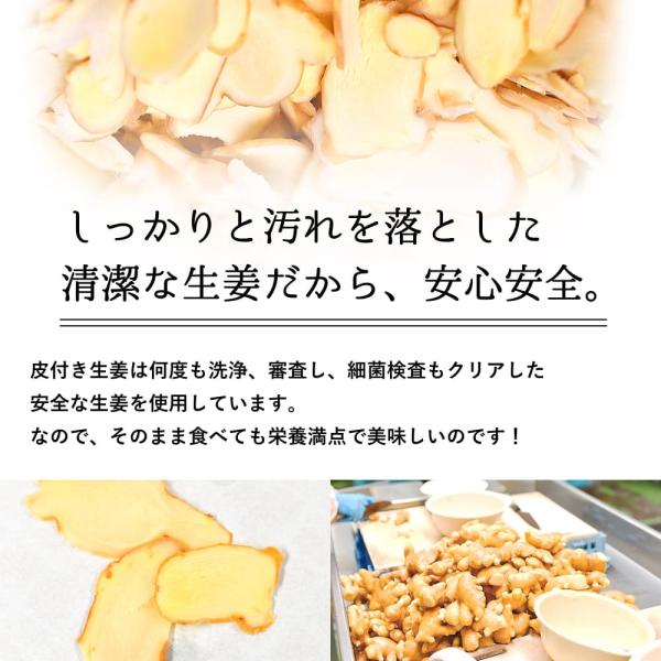 皮付き生姜は何度も洗浄、審査し、細菌検査もクリアした安全な生姜を使用しています。