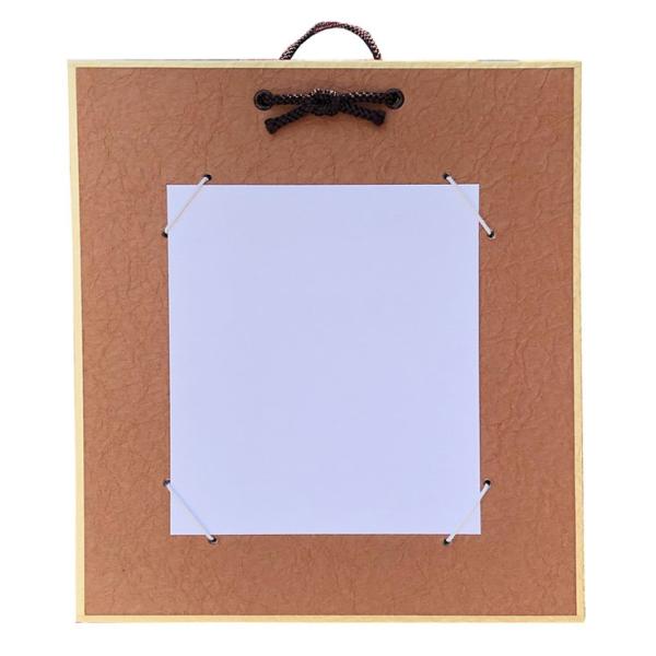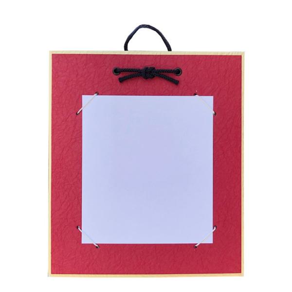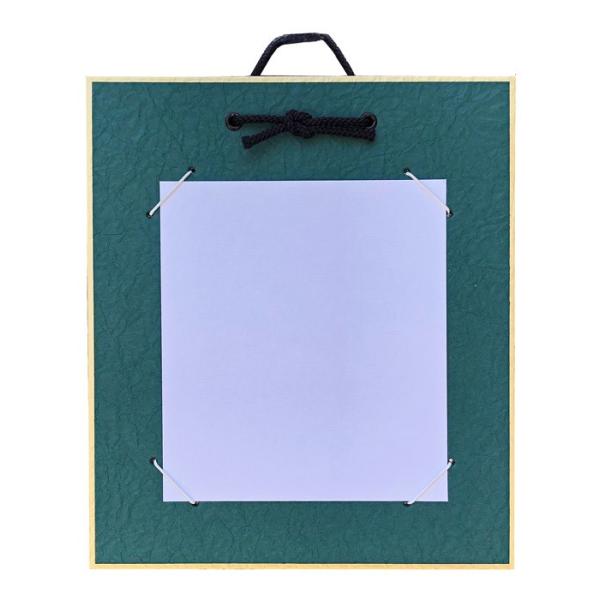 寸松庵サイズ、1/4サイズの色紙や紙/136×121mm/を四隅のゴムで留めて固定し、かけ紐でつるし飾ることができます。