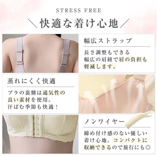 フロントホック ブラ ブラジャー 大きいサイズ 胸を小さく見せる ノンワイヤー ナイトブラ 脇高 授乳 着痩せ 前開き シームレスブラ ナイトブラ