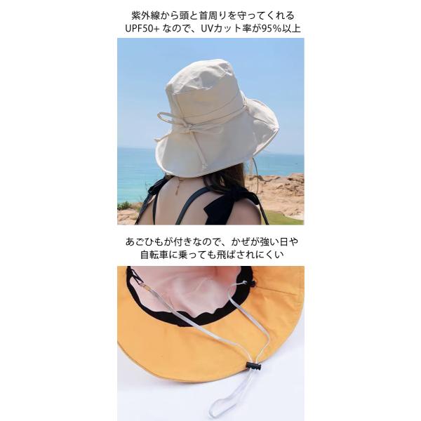 紫外線から頭と首周りを守ってくれるUPF50+ なので、UVカット率が95%以上レディース帽子。