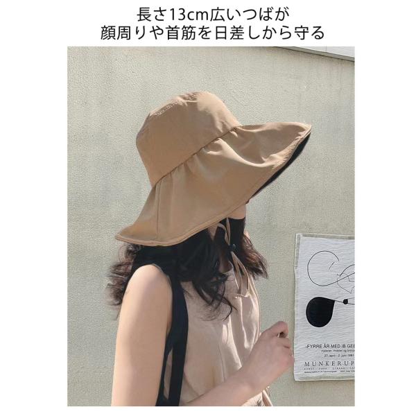 長さ13cm広いつばが顔周りや首筋を日差しから守る
