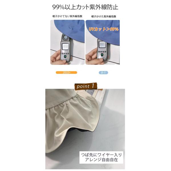 紫外線から頭と首周りを守ってくれるUPF50+ なので、UVカット率が99%以上レディース帽子。