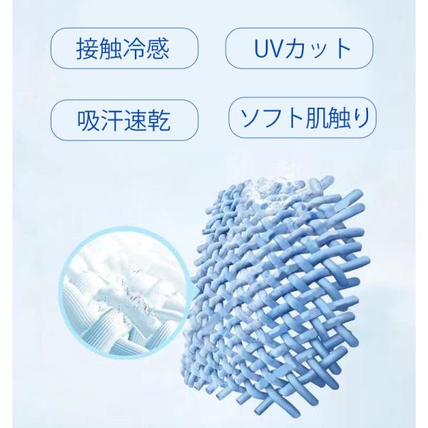 生地にはUVカット効果だけではなく、吸汗性、速乾性、通気性に優れた冷感素材を採用、