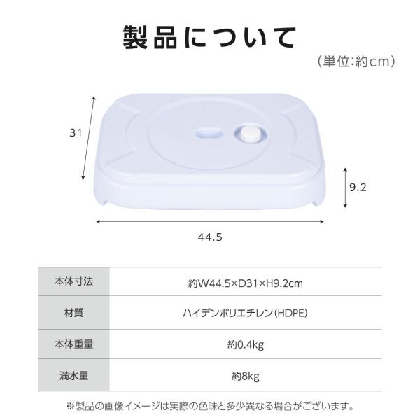 ※色:ホワイト / サイズ:約W44.5XD31 XH9.2cm /材質:ハイデンポリエチレン(HDPE)/ 本体重量:約0.4kg / 満水量:約8kg