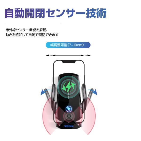 車載スマホホルダー ワイヤレス充電器 自動開閉センサー Qi認証済み 15W急速充電 4〜6.5インチのスマホ対応 片手操作 iphone14 13 12 11 xd-a18
