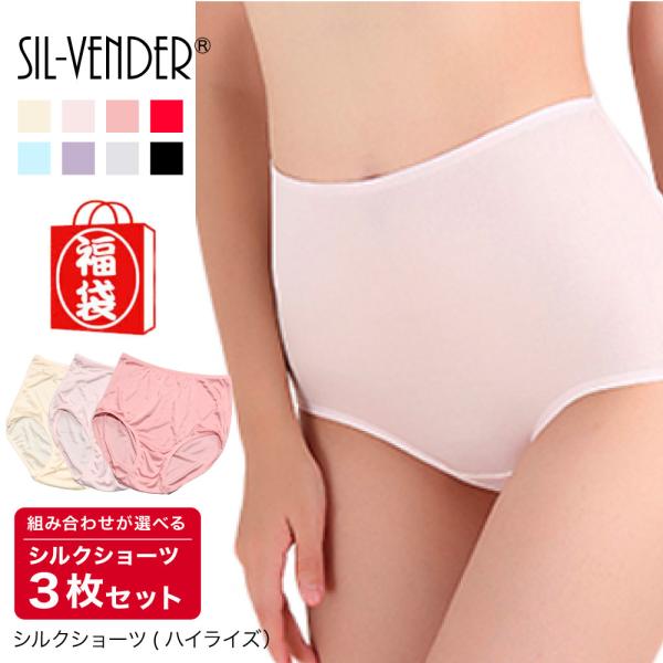 ハイライズ シルク ショーツ 選べる3枚セット 福袋 メール便送料無料 silk 100% レディース 絹 パンツ 下着 ムレない 敏感肌 低刺激