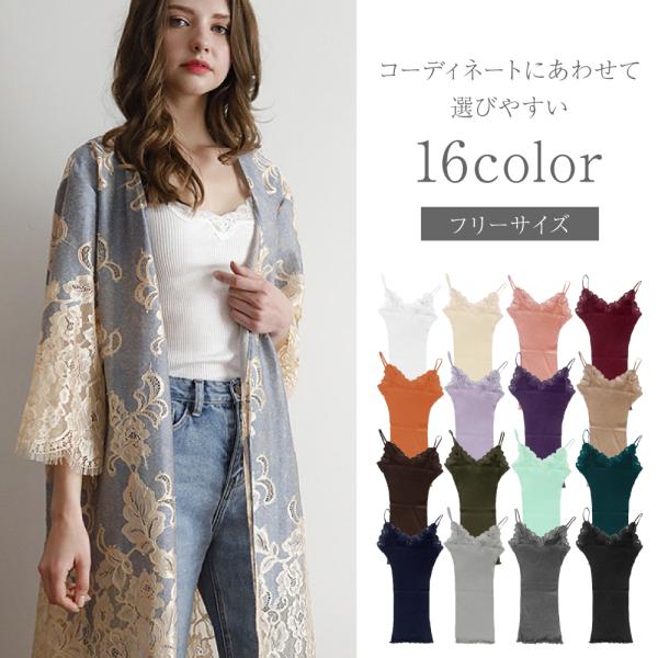 送料無料 シルク コットン リブ レース キャミソール 冷え取り