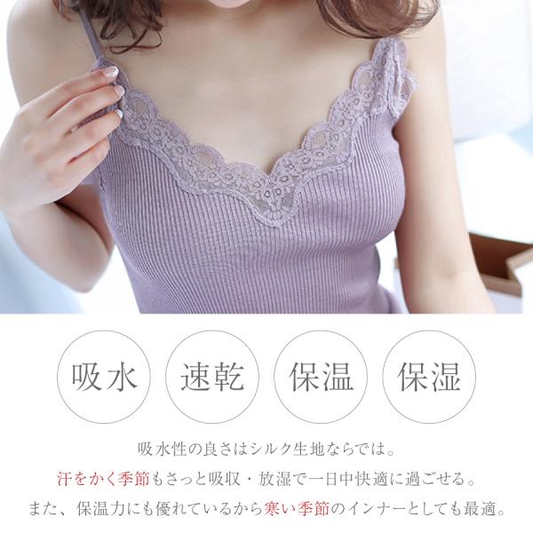 キャミソール メール便送料無料 シルク コットン 絹 綿 リブ レース インナー 冷え取り かわいい 温活 汗取り 保湿 通気快適 敏感肌用 母の日