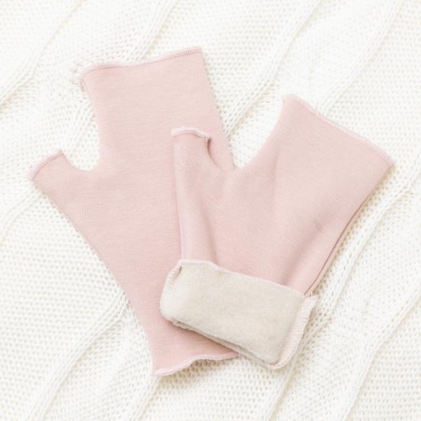 裏起毛 手袋 グローブ 裏地 シルク100% 送料無料 指なし ハンドウォーマー 綿 コットン モダール オフィス スマートフォン対応 暖かい 温活 シルク レディース