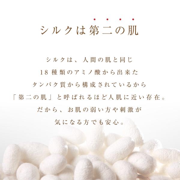シルクは軽い、柔らかい、細いという三つの特性を持つ天然繊維で、繊維の女王です。その構造は人間の皮膚に最も近い、87%は同じです。人間の第二の皮膚ともいわれています。シルクの主成分はアミノ酸でできたタンパク繊維で、人間の身体に優しい素材として昔から重宝されています。