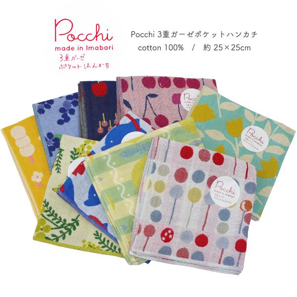 ハンカチ ガーゼ 今治 Pocchi 今治タオル ハンカチ 3重ガーゼ タオルハンカチ ガーゼ素材 日本製 25cm×25cm 綿 100% ネコポス