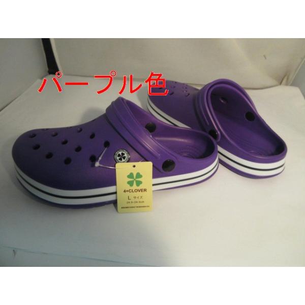 レディース クロッグサンダル 90450 4+CLOVER 2Way 超軽量 合成樹脂製 パープル色、とブラック色と、ネイビー色