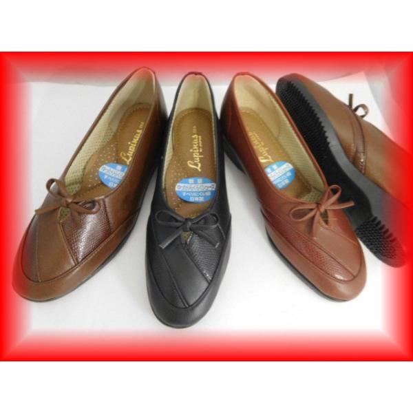 レディースウォーキングシューズ カジュアル靴 ルピナス4003 リボン付き 日本製 軽量 ゆったり 4E幅 高さ3,3cm