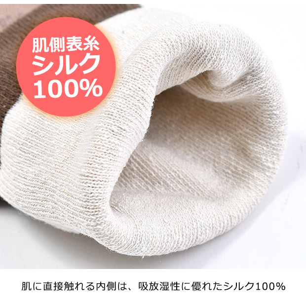 ●素材:外側/アクリル、ポリエステル、その他 内側/シルク、ポリエステル、その他(※肌側表糸はシルク100%)