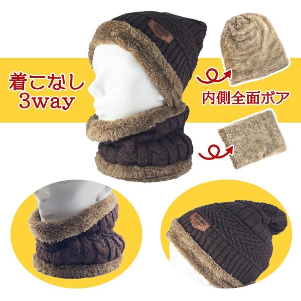 防寒・保温効果抜群のニット帽&ネックウォーマーの2点セット。