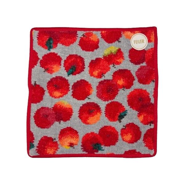 クリックポスト配送(送料198円) ラッピング不可 フェイラー ハンカチ FEILER レポム 林檎柄 ライトグレー/赤 レッド 25×25cm シュニール織りタオル地