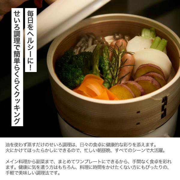 今、のせて蒸すだけのせいろ蒸しが大ブーム!蒸気の力で食材を加熱することで、その本来の味が際立ちます。天然木と竹が余分な水気を適度に吸収し、蒸気が食材をふんわりと優しく包み込み、本格的な蒸し料理をご家庭で手軽にお楽しみいただけます。