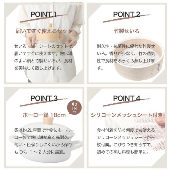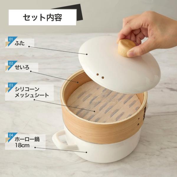 【素材】せいろ:天然木・竹、鍋本体・フタ:ほうろう、フタのつまみ:天然木、シリコーンメッシュシート:シリコーンゴム