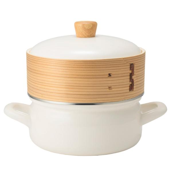 富士ホーロー せいろ付きホーロー鍋 18cm ホワイト グレージュ 2カラー SER-18W 蒸篭 蒸籠 せいろ蒸し 蒸し料理