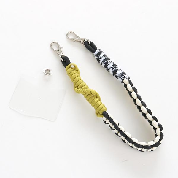 人気のソロモン編みシリーズよりショートストラップが登場。パラコード素材をソロモン編みにしています。装着方法はとても簡単!付属のクリアタグをスマートフォン本体とケースの間に挟むだけ。どの機種でも簡単にストラップタイプのスマホケースにできます。ロープの長さは約28cmと男性でも手首に通せる短すぎないサイズ。ソロモン編みは細すぎず、丈夫で持ちやすい太さなので使いやすさ◎スマホの落下防止やちょっと手で持っておきたい時に便利です。ユニセックスなデザインなのでカップルや友人、家族とお揃いでいかがですか。
