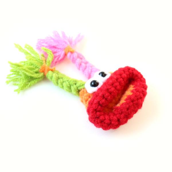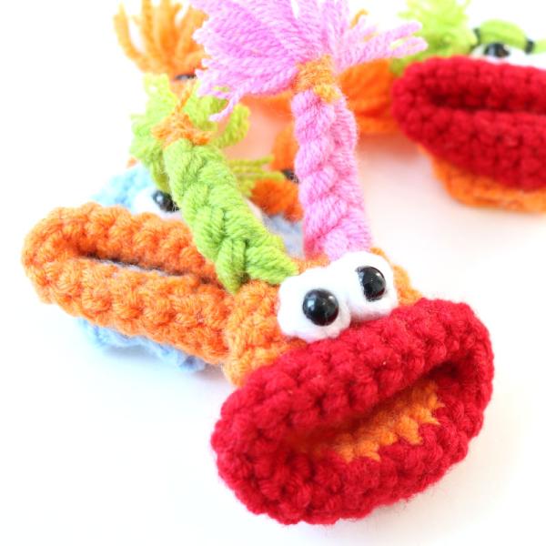 愛嬌ある独特なキャラクターが毛糸で表現されたキーカバー