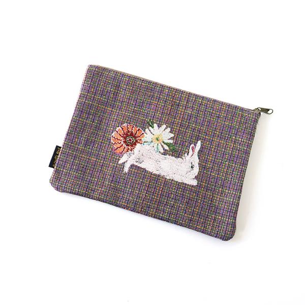 カラフルな色彩と特徴的に描かれた動物が印象的 Flat pouch