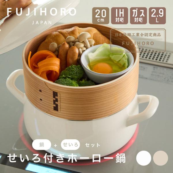 富士ホーロー せいろ付きホーロー鍋 20cm ホワイト グレージュ 2カラー 蒸篭 蒸籠 せいろ蒸し 蒸し料理