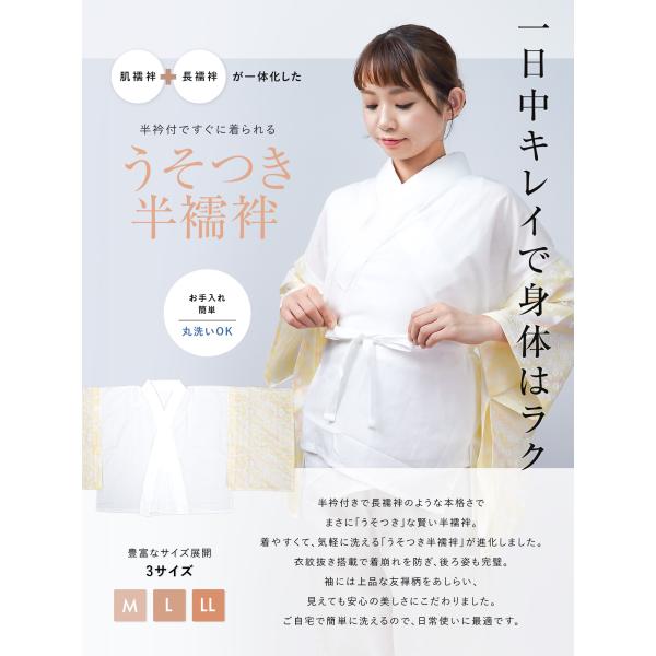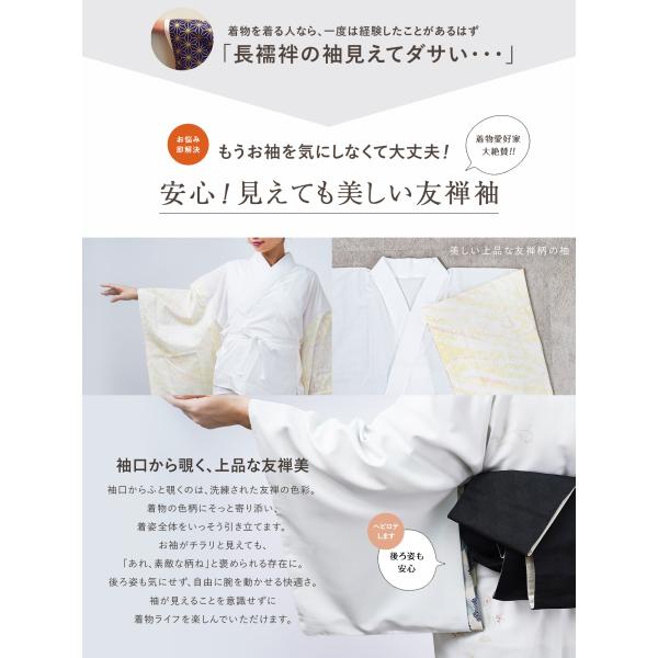 半襦袢 半衿付 うそつき半襦袢 日本製 友禅袖 衣紋抜き 洗える 綿 友禅柄袖 腰紐付き 通年用 吸汗 半衿 着物下着 肌襦袢 和装 訪問着 小紋 作務衣 レディース