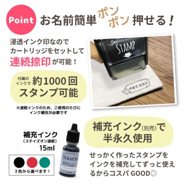 お名前スタンプ Pon’とStamp 名前スタンプ オーダー 布 スタンプ 名前 おなまえ ネーム印 名前シール おむつ アイロン ひらがな 油性 はんこ
