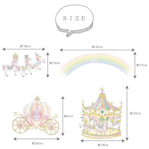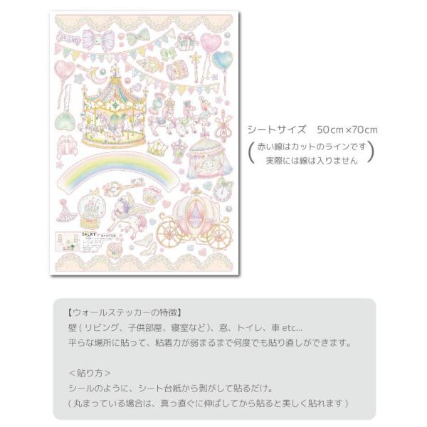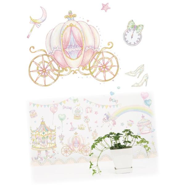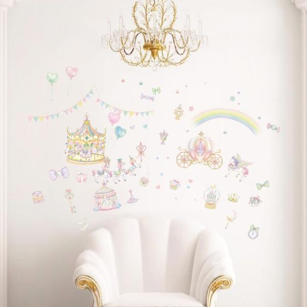 (イラストレーター「たけいみき」公式オリジナルグッズ) ウォールステッカー「メリーゴーランド」(50×70cm) 金箔・箔押し プリンセス パステル ガーリー