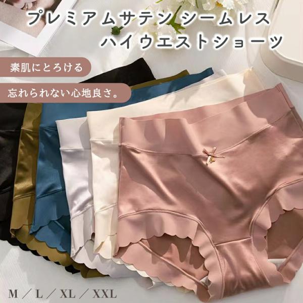 【最新シルク混抗菌クロッチ】ハイウエスト ショーツ レディース プレミアムサテン シルクタッチ ラグジュアリー アイスシルク 大人可愛い 体型カバー 補正下着