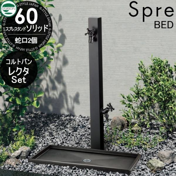 おすすめ【無料★特典付】 スプレスタンド60ソリッド BED(ブラックエディション) 蛇口2個セット + コルトパン レクタ 蛇口付き立水栓&パン 組合せセット 2