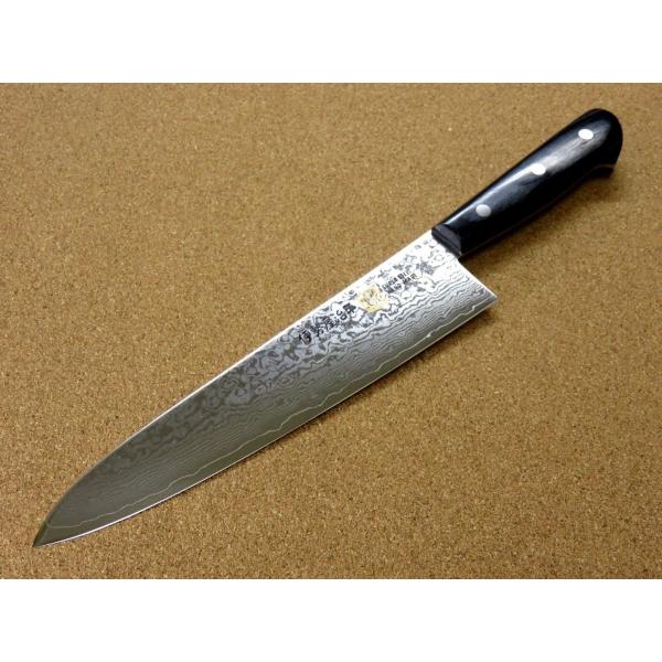 包丁 牛刀 21cm (210mm) 関の刃物 伊勢谷治平 ダマスカス鋼 33層 V金10号 両刃 洋包丁 開運包丁 日本製